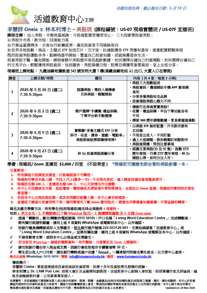 李慧群Cineia x 林本利博士 – 美股班 (課程編號:US-07現場實體班 / US-07F直播班)